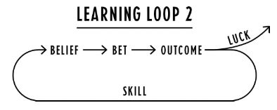 Annie Duke’s learning loop involves the continuous process of gaining knowledge and refining decision-making through the examination of outcomes.